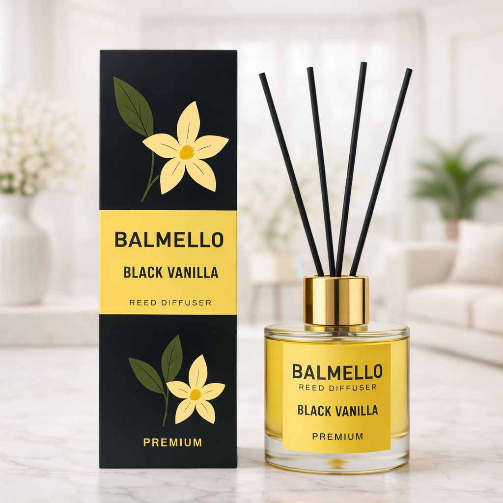 Wprowadź do domu aromat pełen głębi, ciepła i aksamitnej słodyczy. BALMELLO Black Vanilla PREMIUM to zapach idealny dla osób, które kochają intensywne, eleganckie kompozycje – wyrafinowane, przytulne i zmysłowe jednocześnie.