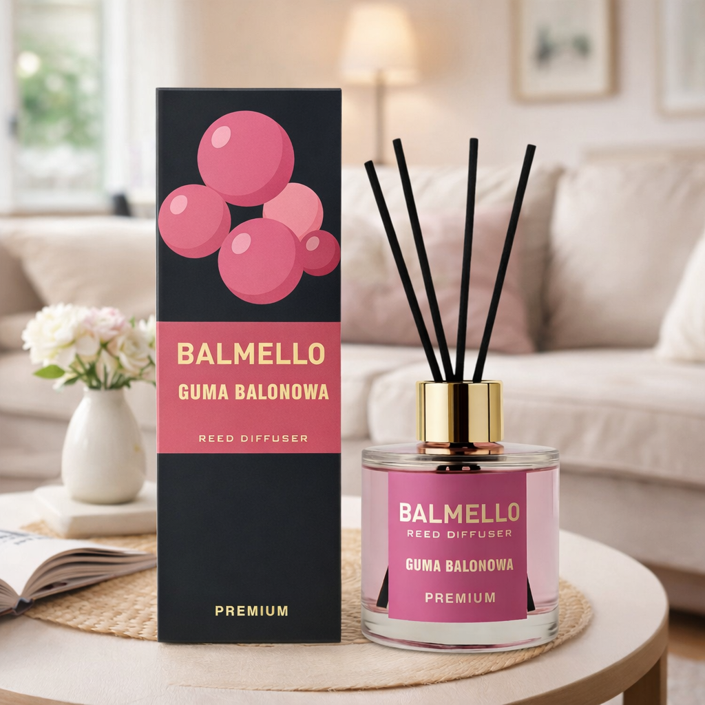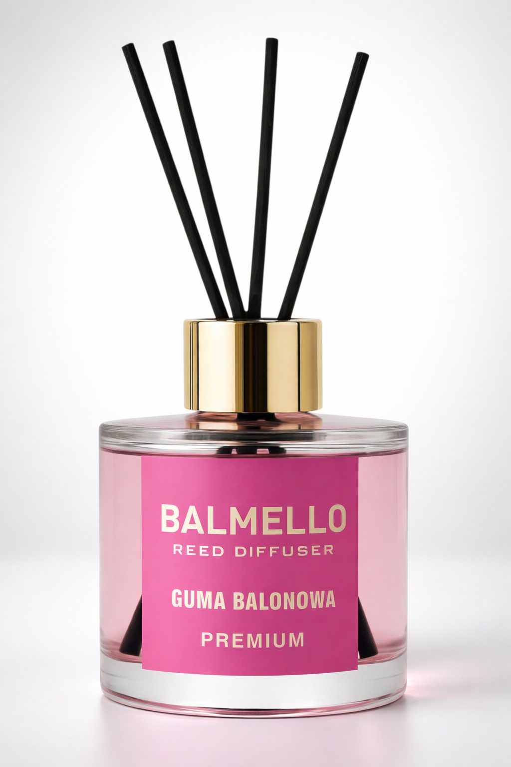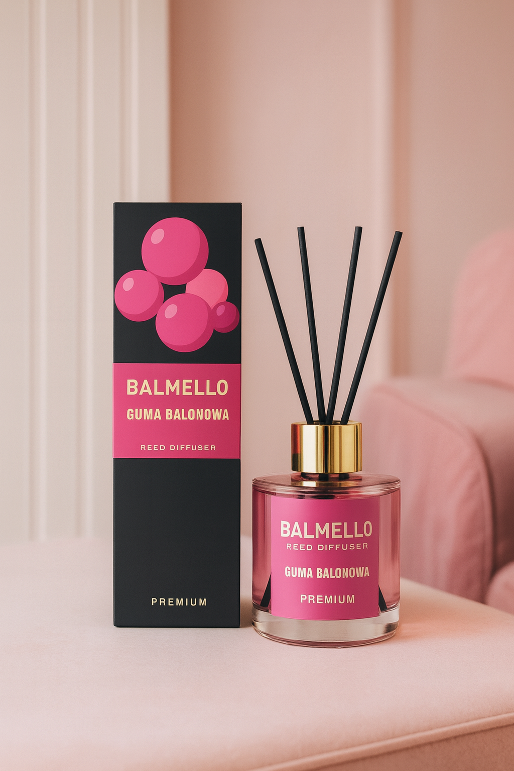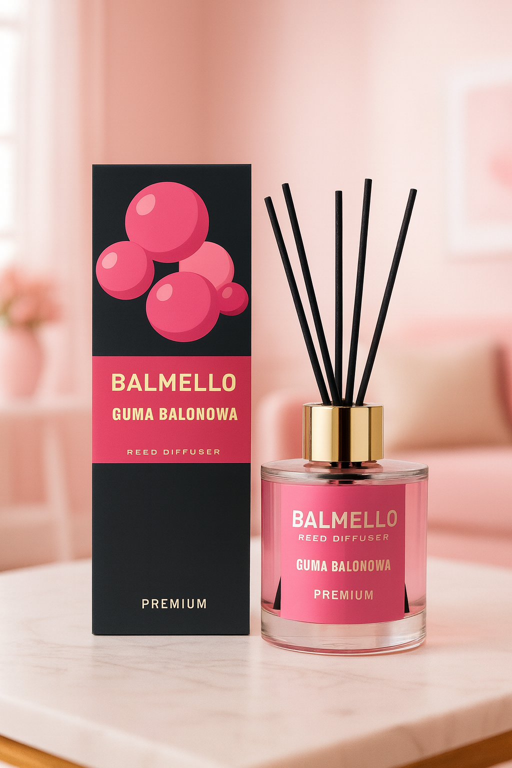 Wypełnij wnętrze aromatem pełnym dziecięcej radości, słodyczy i beztroskiego uśmiechu. BALMELLO Guma Balonowa PREMIUM to wyjątkowa kompozycja dla osób, które kochają pozytywne, cukierkowe zapachy o energetycznym charakterze.